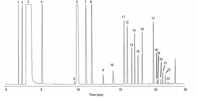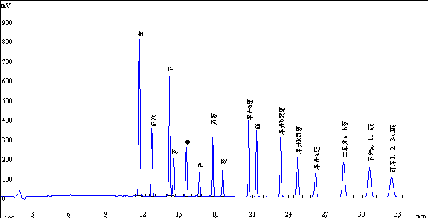 16种多环馨香烃规程品色谱仪色谱图下例: