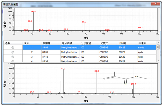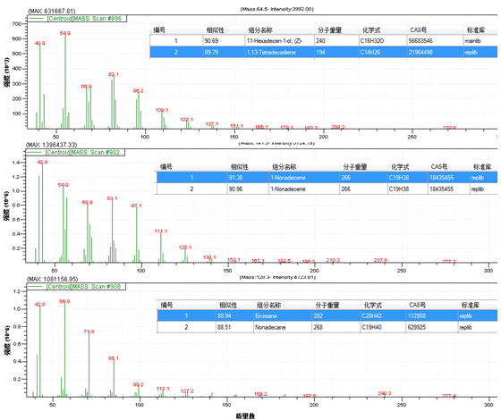 图2.3 三重峰的质谱图(图2.2中8.6~8.9 min)经NIST2014库确认