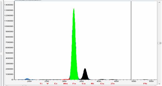 ①.本质铁矿石在EDX 3600B上考试的谱图