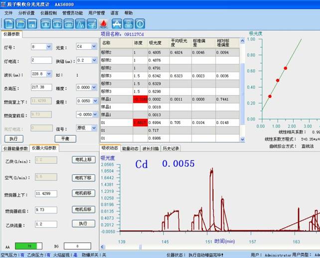 试料用稀盐酸和过脱色氢消融,于原子团收到光谱图仪激发光谱228.8 nm处,以的氛围-乙炔贫燃燃烧的火焰抵制镉的含量的测量。