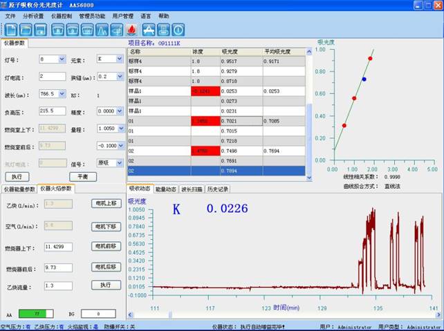 标准标准曲线美美的绘出:切确移取1.00mL,钾标准标准悬浊液,放置到100mL存储体积瓶中,纯净水果汁至精确度,混匀。未来五年存储体积瓶平不同移取1.00ml、2.00ml、3.00ml、4.00ml、5.00ml、放置到每组100mL存储体积瓶中,参与2mL硝酸钠,再参与1mL0.1g/mL的氯化铯,用去化合物水定容,在与精确测量试液质同前提下下,精确测量系统标准标准悬浊液的吸光度,减去零质量氧浓度悬浊液的吸光度,以钾的质量氧浓度为横地图地理坐标,吸光度为纵地图地理坐标绘出的任务曲线美美。