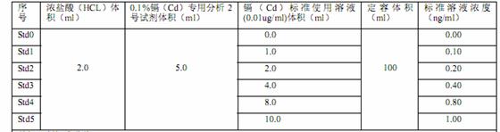 巧用镉(Cd)规范起来巧用稀硫酸(0.01ug/ml),优级纯硝酸(HCL) ,0.1%镉(Cd)公用设施阐发 2 号制剂,去正离子水(阻值率≥10M欧姆)等制剂。