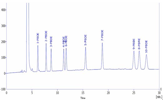 10种多溴联苯醚实验室管理标准夹杂着悬浊液谱图: