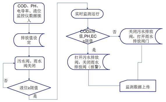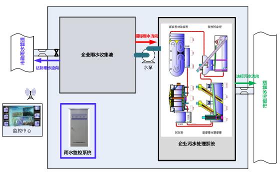 监测体系节制采样单位将水样导入监测室,并启动监测水质的COD、pH、电导率等惯例参数。达标雨水经过过程电控阀门排入市政雨水管网,一旦超标电控阀门封闭,制止雨水排入市政雨水管网,并经过过程水泵将超标雨水泵入企业污水处置体系处置,达标后排放至市政污水管网。同时一切监测数据经过数据收罗单位将数据统计后,由传输装备传输至企业监测中间或环保局,由此实现对雨水排放主动、及时、持续监控。